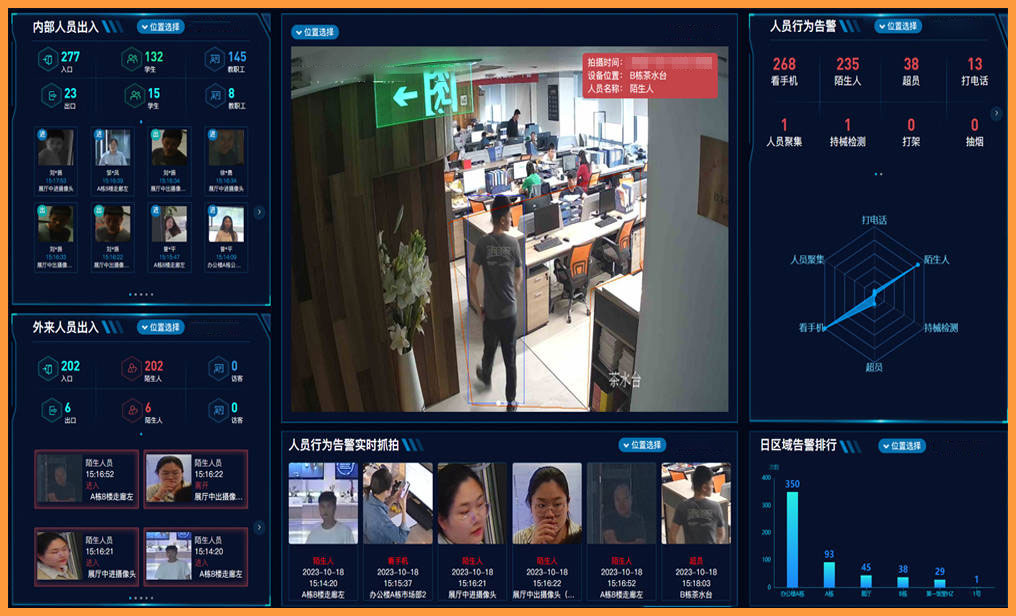 通過(guò)部署集成行為識(shí)別功能的智能攝像頭與數(shù)據(jù)分析平臺(tái),實(shí)現(xiàn)對(duì)園區(qū)周界、重要出入口、公共區(qū)域的24小時(shí)智能監(jiān)控。系統(tǒng)能夠自動(dòng)識(shí)別攀爬、非法闖入、可疑滯留等行為,并實(shí)時(shí)推送告警信息至安保人員移動(dòng)終端。